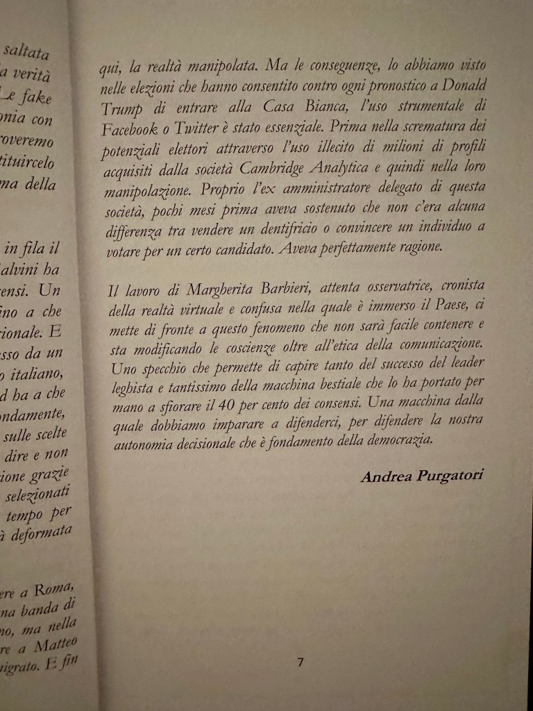 Come ha fatto la Lega a conquistare così tanti elettori? Questo libro dà una risposta precisa, tramite un’analisi critica attenta della comunicazione del Capitano, vista secondo gli occhi della Bestia. Un volume da leggere per scoprire fino a che punto il potere dei social media può influenzare gli italiani e il loro voto. Per comprendere come si è trasformata la politica. Per capire gli errori della destra, e quelli della sinistra. Prefazione di Andrea Purgatori.